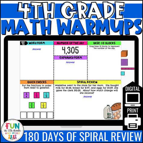 Web the 4th grade math spiral review is common core aligned. Display an activity on your interactive whiteboard when students enter class each day. These warm ups are created with test prep in mind and can be used as morning work,.